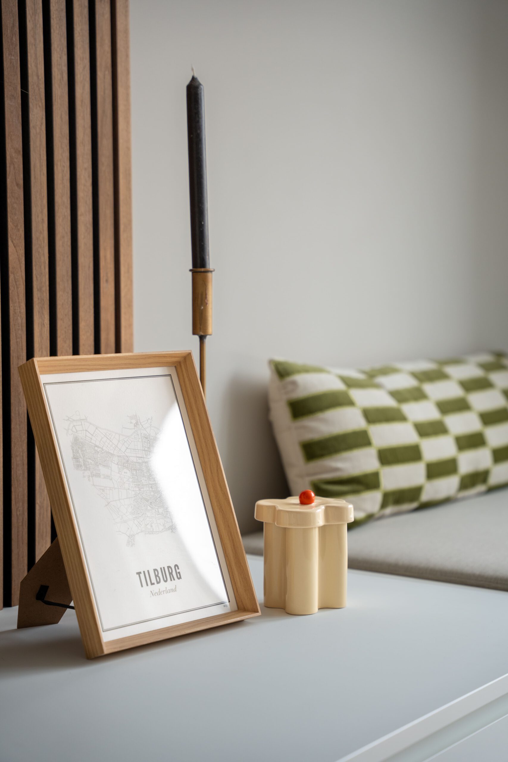 Daarnaast bood het plaatsen van deze divider een mooie oplossing om een bouwkundige paal te maskeren die anders midden in de ruimte zou hebben gestaan. Een slimme én stijlvolle manier dus om functionaliteit en esthetiek samen te brengen. Daar houd ik echt van!